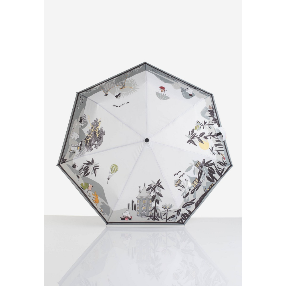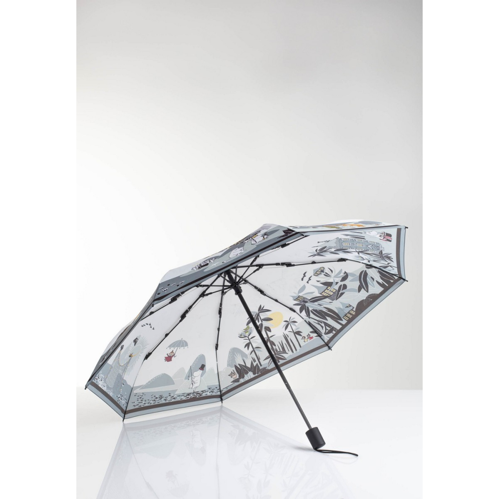 Když prší hledáme ostrov, kde bychom se mohli schovat, který by byl naším útočištěm. A právě takovou oázou může být skládací deštník Moomin Island v šedém provedení. Tento stylový deštník od finského Lasessoru je doplněn mumínkovskými motivy a díky svému pečlivému provedení vás ochrání před jakýmkoliv poryvem větru. Navíc je deštník opatřen praktickým poutkem i stylovým pouzdrem, do nějž můžete deštník vložit. Máte malý batoh a bojíte se, že se vám tam deštník nevleze? Tím se nemusíte absolutně trápit, tenhle kousek měří ve svém složeném stavu pouze 24 cm.