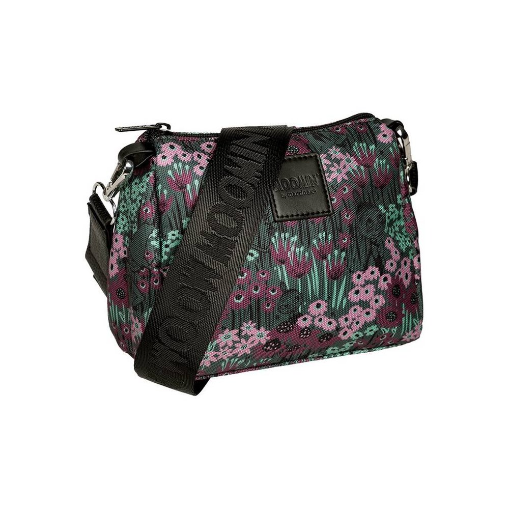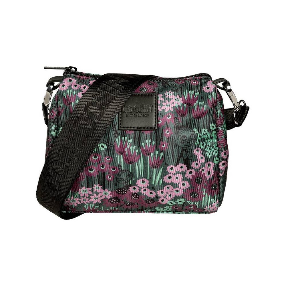 Květiny jsou v Moominvalley v plném květu a zdobí louku svými krásnými barvami. V barevných vzorech kabelky přes rameno Mumin, Little My a Mymble obdivují bohatou a nádherně barevnou květinovou louku.