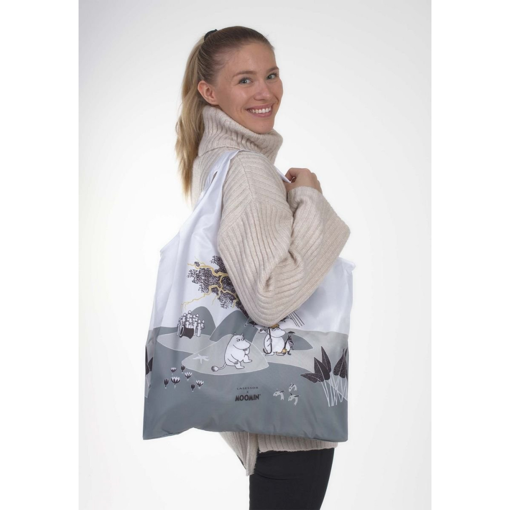 Na nákupy s radostí? Jde to! Třeba s nákupní taškou od Lasessoru. Tahle je totiž originál! Vyrazte do světa s šedou taškou Moomin Island, je velice praktická, protože ji můžete schovat do menší verze této tašky a celý balíček se vám vejde klidně do kapsy u bundy. Další velkou výhodou této nákupní tašky je, že je vyrobena z ekologického materiálu a jelikož je nepromokavá, žádný obsah vám nepromokne, ani se vám nerozpadne jako ty papírové tašky z obchodu. Nákupní taška unese až 20kg a když se ušpiní, tak ji můžete vyprat v pračce.